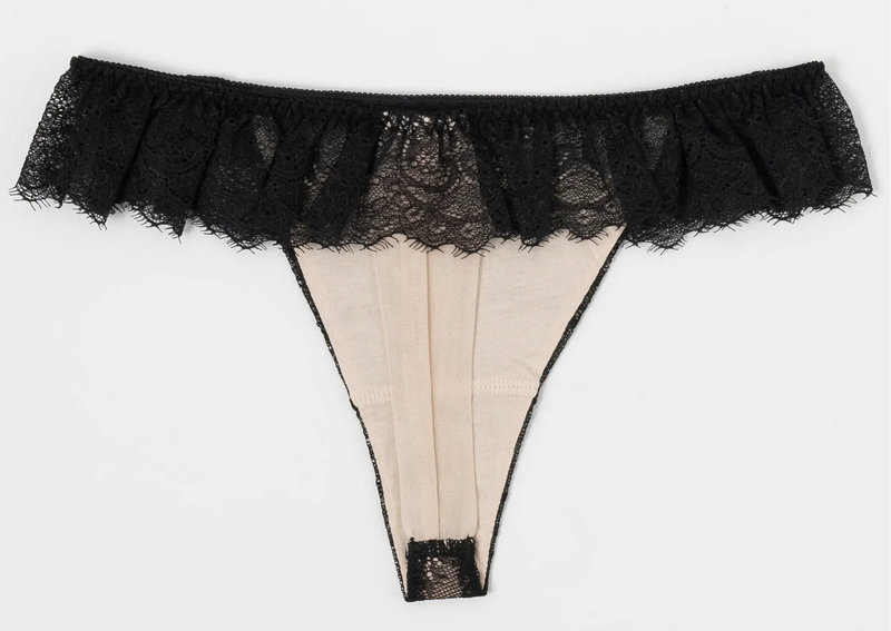 バックのT部分もゴムを使用せず、ネットを折り返しているため、ヒップラインにフィットし、優しい履き心地。