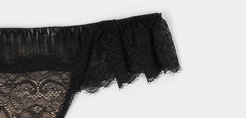 ウエスト周りにも贅沢にレースを使用し、繊細なレースと肌の透け感を楽しめるデザイン。